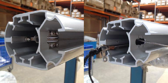 11. It is a good idea to remove the Mast Cap #23 again and run through a cycle of opening and closing once back on the Spigot #33 standing upright. When open look down the Mast #27 and check the Cable is still running down the Mast to the Swivel Pulleys #26 without twists. Close the umbrella and check once more, if still in the correct position replace the Mast Cap and you have completed the modification.