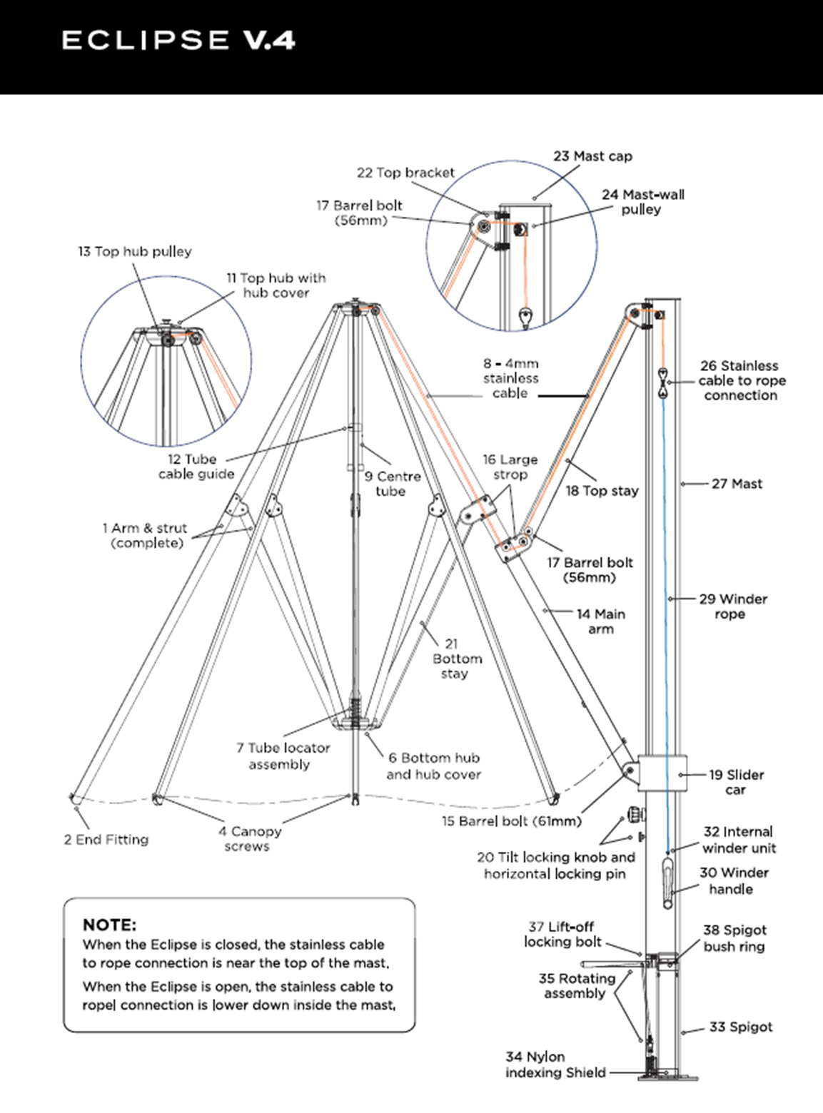 Our Eclipse Umbrella has seen some updates over the years and therefore some spare parts may vary between their Versions,